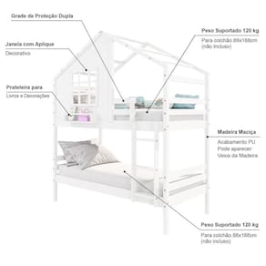 Material Principal: Madeira Maciça | Cor: Branco | Necessita Montagem: Sim | Acompanha Colchão: Não | Tipo de Cama: Beliche