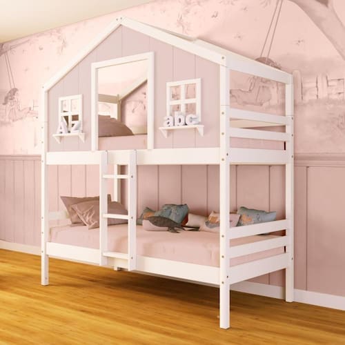 Material Principal: Madeira Maciça | Cor Predominante: Rosa/ Branco | Necessita Montagem: Sim | Acompanha Colchão: Não | Tipo de Cama: Beliche Solteiro | Altura: 227 | Largura: 96,6 | Comprimento: 199 | Peso: 64 | Peso máximo suportado: 120 | Cor Via: Branco | Peso com Embalagem: 64 | Comprimento com Embalagem: 192 | Largura com Embalagem: 30 | Altura com Embalagem: 30 | Tamanho da Cama: Beliche Solteiro | Descrição do Tamanho: Beliche Solteiro | Quantidade de Caixas: 04