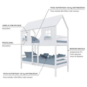 Diferenciais: Escada Fixa, Casinha e Telhado com fechamento em MDF, Janela e Prateleira Decorativa.
