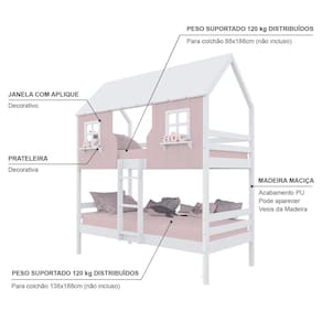 Diferenciais: Escada Fixa, Casinha e Telhado com fechamento em MDF, Janela e Prateleira Decorativa.