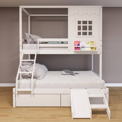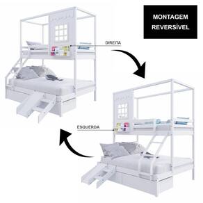 Diferenciais: Escada com Leve Curvatura, 02 Gavetas, Kit Escada/ Escorregador, Casinha com fechamento em MDF, Janela e Prateleira para Livros e Decoração, Montagem Reversível (Lado Direito ou Lado Esquerdo)