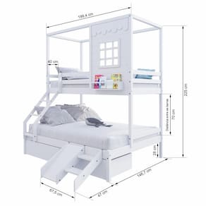 Material Principal: Madeira Maciça | Cor: Branco | Necessita Montagem: Sim | Acompanha Colchão: Não | Tipo de Cama: Beliche
