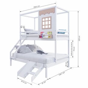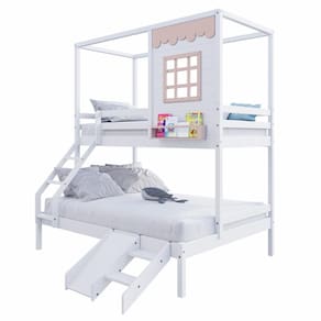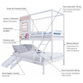 Diferenciais: Escada com Leve Curvatura, Kit Escada/ Escorregador, Casinha com fechamento em MDF, Janela e Prateleira para Livros e Decoração,Montagem Reversível (Lado Direito ou Lado Esquerdo)