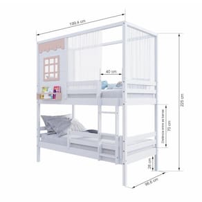 Material Principal: Madeira Maciça | Cor: Branco | Necessita Montagem: Sim | Acompanha Colchão: Não | Tipo de Cama: Beliche