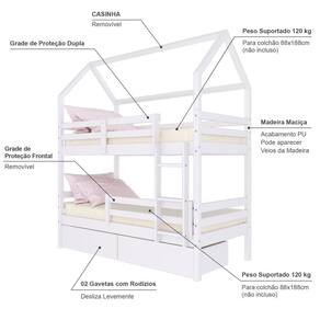 Diferenciais: Escada Fixa, Grade de Proteção Dupla, 02 Gavetas, Grade Removível, Casinha.