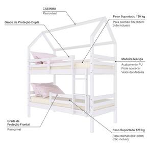 Material Principal: Madeira Maciça | Cor: Branco | Necessita Montagem: Sim | Acompanha Colchão: Não | Tipo de Cama: Beliche