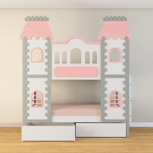 Diferenciais: Castelo com fechamento em MDF, 02 Gavetas, Montagem Reversível da Escada ( lado direto / Lado esquerdo)