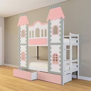 Diferenciais: Castelo com fechamento em MDF, 02 Gavetas, Montagem Reversível da Escada ( lado direto / Lado esquerdo)
