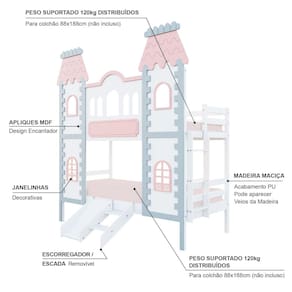 Diferenciais: Castelo com fechamento em MDF, Kit Escada/Escorregador, Montagem Reversível da Escada ( lado direto / Lado esquerdo)