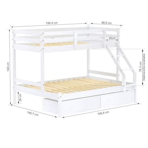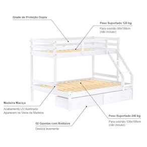 Diferenciais: Todo em Madeira, Escada com Leve Curvatura, Grade de Proteção Dupla, 02 Gavetas.