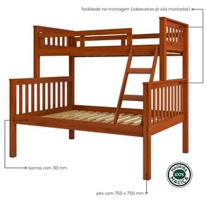 Beliche com Cama de Casal Castanho Claro Madeira Pinus - Saraiva