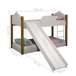 CLASSIFICAÇAO DA CAMA: Infantil | TIPO DA CAMA: Solteiro | GARANTIA DO FABRICANTE: 3 | COMPRIMENTO PRODUTO COM EMBALAGEM (CM): 152 | CONTEÚDO DA EMBALAGEM: 1 Beliche | CORES DO PRODUTO (FILTRO DE CORES): Branco | COR PREDOMINANTE: Branco | DESCRIÇÃO DO TAMANHO: Altura: 112 cm Largura: 77 cm Comprimento: 160 cm | ESTADO DE ORIGEM: SP | ALTURA DO PRODUTO (CM): 112 | LARGURA DO PRODUTO (CM): 77 | LARGURA PRODUTO COM EMBALAGEM (CM): 37 | MARCA: CASAH | MATERIAL PARA FILTRO: MDF | MATERIAL PRINCIPAL: MDF | MODELO: Beliche Infantil Soft Branco e Mel com Escorregador | PESO DO PRODUTO (KG): 39,2 | PESO PRODUTO COM EMBALAGEM (KG): 40 | PRODUTO PRECISA DE MONTAGEM?: Sim, a montagem é simples mas sugerimos a contratação do nosso de montagem (para os CEPs em que o está disponível) ou de algum experiente de sua preferência | INSTRUÇÕES/CUIDADOS: Limpar com pano macio e seco, não utilizar produtos abrasivos. | ALTURA DO PRODUTO COM EMBALAGEM (CM): 42 | COMPRIMENTO DO PRODUTO (CM): 160