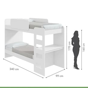 Cor: Branco | Marca: Lopas | Suporta Até (kg): 120Kg | Possui Pés: Não | Possui Gavetas: Não | Necessita Montagem: Sim | Material: MDP e MDF | Acabamento: Pintura UV | Altura (cm): 170 | Largura (cm): 99 | Profundidade (cm): 240 | Tipo de Cama: Beliche | Tamanho do Colchão: Solteiro | Tamanho da Cama: Solteiro | Tamanho do Colchão (LxC): 0,88 x 1,88 | Acompanha Colchão: Não | Garantia: 90 dias | Quantidade de caixas de embalagem: 1 | Inclui manual de montagem: Sim