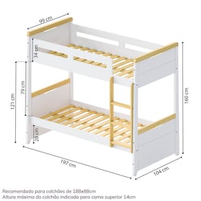 O Beliche com Led Lateral Petit da Casatema MadeiraOriginals redefine o conceito de otimização de espaço com um toque de modernidade e aconchego. Perfeito para irmãos ou para quem ama receber amigos, este beliche é uma solução inteligente que preserva a área útil do quarto, sem abrir mão do design e da segurança. A estrutura em 100% MDF garante a qualidade e a firmeza para o uso diário, enquanto os detalhes em madeira maciça nos pés angulados injetam sofisticação. O grande diferencial é a iluminação LED integrada na lateral, que não só adiciona um toque de charme e bem-estar, funcionando como uma luz noturna suave, mas também aumenta a segurança na movimentação durante a noite. As grades laterais são integradas de forma harmoniosa, reforçando a proteção prioritária. Com seus tons suaves e Produto Montado: Sim Ambiente Principal: Quarto Infantil codigo_ean: 7900288271006 Complexidade da Montagem: Alta: deve ser montado por um montador especializado Cor: Branco/Mel Cor do Produto: Branco/Mel Escala de Brilho: Semi-Fosco Informações Complementares: Peso suportado indicado se bem distribuído Itens Inclusos: 1 Beliche, 1 Manual de Montagem e 1 Kit Ferragens Linha ou Coleção: Petit Manual de Montagem e Instalação: https://product-hub-prd.madeiramadeira.com.br/486411392/documents/f42e2082-9f21-4c4d-94cc-8d994a9554eb3288477505517611572100185.pdf Marca: Casatema Material Principal: MDF Necessita Montagem: Sim Origem do Produto: Nacional Peso: 74,72 kg Recomendações de Uso, Manutenção e Limpeza: Na limpeza não utilizar produtos químicos e abrasivos, usar apenas um pano umidecido, seguido de pano seco, para garantir a maior durabilidade do móvel. Sistema de Montagem: Parafusos