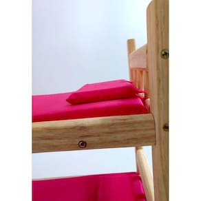 Com medidas de 60 cm de comprimento, 50 cm de altura e 31 cm de largura, essa beliche é ideal para acomodar as bonecas de forma segura e confortável. Acompanha também 02 colchões com travesseiros nas cores pink, para deixar as bonecas ainda mais confortáveis.