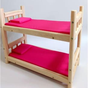 Com medidas de 60 cm de comprimento, 50 cm de altura e 31 cm de largura, essa beliche é ideal para acomodar as bonecas de forma segura e confortável. Acompanha também 02 colchões com travesseiros nas cores pink, para deixar as bonecas ainda mais confortáveis.