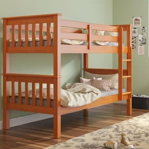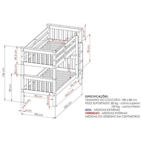 O Beliche de Solteiro Madeira Maciça para Colchão 88 x 188 cm Multimóveis CR35207 é produzido em madeira maciça de pinus com acabamento em pintura PU, combinando alta qualidade, durabilidade e facilidade na limpeza. Além disso, suporta até 80kg na cama superior (possui grades de proteção) e 100kg na cama inferior, garantindo segurança e tranquilidade para as noites de sono. Possui escada fixa que proporciona um toque de requinte e permite a utilização de cama auxiliar (virando treliche). NÃO acompanha colchões (tamanho indicado dos colchões: 188 x 88 cm). Com design elegante e funcional, este beliche é a solução perfeita para otimizar o espaço do quarto.
