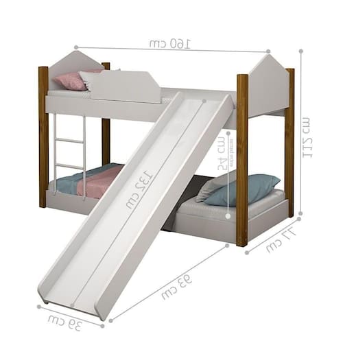 Agora a hora de dormir das crianças terá mais charme e segurança com a Beliche Juvenil com Escorregador