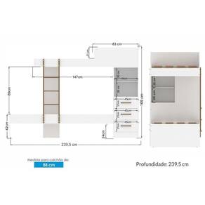 Dimensões(Cm): Comprimento(Profundidade): 240cm x Largura: 93cm x Altura: 169cm