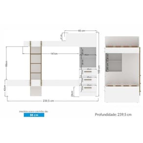 Dimensões(Cm): Comprimento(Profundidade): 240cm x Largura: 93cm x Altura: 169cm