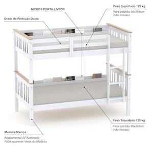 Diferenciais:Todo em Madeira, Escada Fixa, Grade de Proteção Dupla, Porta Livros em MDF
