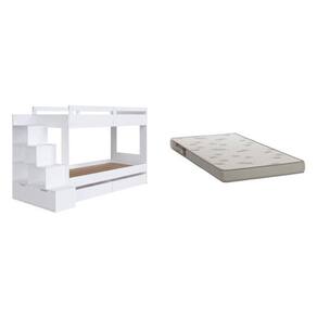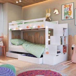 Beliche Infantil com Escada 5 Nichos 2 Gavetões 2 Colchões Branco