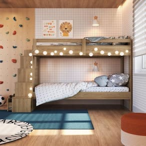 Beliche Infantil com Escada Nichos 2 Gavetas 2 Colchões Aveiro Oak. O quarto da sua ou suas crianças ficará ainda mais charmoso com a nossa Cama Beliche da Completa Móveis. Com escadas laterais, uma praticidade para a subida e descida do seu pequeno. Em cada degrau, nichos que facilitam e otimizam o espaço. Nestes nichos, podes guardar e organizar vários brinquedos, livros e outros acessórios. Nos últimos dois nichos rentes ao chão, duas gavetas que acompanham o produto e o tornam ainda mais completo! Permite a montagem da escada lateral tanto do lado direito quanto lado esquerdo. Opcional em várias combinações de cores, confira! Produto 100% MDP em 15 milímetros de espessura! Acompanha Colchões de Solteiro 78cm x 188cm Ean: 7909903416037