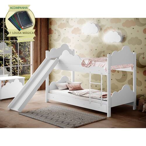 Garantia: 90 dias Pintura UV Verniz Estrutura em MDF Produto Desmontado Acompanha lousa mágica (Produto Ecológico, Salva 3 Árvores, para o Desenvolvimento, Botão para Limpar, Bateria Média 2 Anos) Não acompanha colchão Colchão indicado: 150x70cm