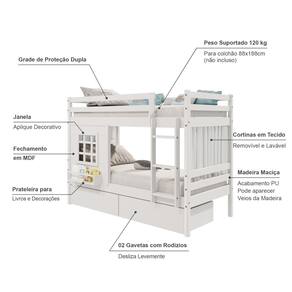 Diferenciais: Escada Fixa, Grade de Proteção Dupla, Janela com fechamento em MDF e Prateleira para Livros e Decoração, 02 Gavetas, Cortina.