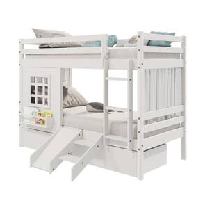 Diferenciais: Escada Fixa, Grade de Proteção Dupla, Janela com fechamento em MDF e Prateleira para Livros e Decoração, 02 Gavetas, kit Escada/ Escorregador, Cortina.