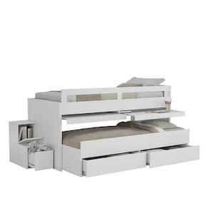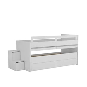A Beliche Baixa 2 Gavetas com Escrivaninha Foscarini é a solução perfeita para fornecer conforto, otimização de espaço e segurança para pequenos ambientes. Possui 2 gavetas grandes com corrediças telescópicas que proporcionam deslize suave e abertura total, 2 escrivaninhas retráteis para os estudos e uma linda escada que conta com mais uma gaveta e uma porta basculante que servem para guardar seus objetos preferidos e ainda 4 rodízios na cama inferior. É produzido 100% em MDF, material de alto nível, com acabamento UV fosco/texturizado de excelente qualidade que garante brilho e proteção em toda a superfície do móvel por muito mais tempo. Excelente acabamento com estrutura toda em 25mm e peças menores em 15mm. É indicado para colchões no padrão solteiro de 88 x 188 cm e sustenta até 10 Acabamento da Gaveta: Pintura Texturizada UV Acabamento da Porta: Pintura Texturizada UV Acompanha Cama Auxiliar: Não Acompanha Colchão: Não Altura do Estrado até o Chão: 59,6 cm Altura do Estrado Superior até o Chão: 64.0000 Ambiente Principal: Quarto Infantil codigo_ean: 7909903175101 Complexidade da Montagem: Média: pode ser montado por mais de uma pessoa e/ou necessite de maior conhecimento para montagem Cor: Branco Cor do Produto: Branco Escala de Brilho: Fosco Escala de Brilho da Gaveta: Fosco Escala de Brilho da Porta: Fosco Gaveta com Chave: Não Itens Inclusos: 1 Beliche, Kit Ferragens e Manual de Montagem. Manual de Montagem e Instalação: https://product-hub-prd.madeiramadeira.com.br/800554/documents/959dc4a8-35b2-48b2-ae29-913bff7f9dd4105969811911belichebaixo.pdf Material da Escada: MDF Material da Gaveta: MDF Material da Porta: MDF Material do Estrado: pinus e eucalipto Material Principal: MDF Medida da Escrivaninha (A x L x P): 59,6cm x 91,6cm x 45cm Necessita Montagem: Sim Número de Camas: 02 Origem do Produto: Nacional Permite a Utilização de Cama Auxiliar: Não Peso: 158 kg Peso Máximo por Gaveta: 15 kg Peso Suportado por cada cama: 100.0000 Possui Escrivaninha: Sim Possui Pés: Não Possui Prateleiras: Não Recomendações de Uso, Manutenção e Limpeza: Limpar com flanela ou pano macio seco, não utilizar produtos abrasivos, desengordurantes, álcool ou solvente. Não expor o produto diretamente à luz solar e à umidade. Sistema de Montagem: Parafusos, Minifix e Cavilhas. Suporta Até (kg): 200 kg Tamanho do Colchão Indicado (L x C): 88 X 188 Tipo de Cama: Beliche Tipo de Colchão: Solteiro Tipo de Corrediça da Gaveta: Metálica Telescópica Tipo de Dobradiça/Corrediça da Porta: Aço Tipo de Estrado: Removível Tipo de Porta: Basculante Tipo de Puxador da Gaveta: Embutido Tipo de Puxador da Porta: Embutido Trava de Segurança: Não