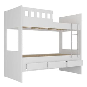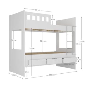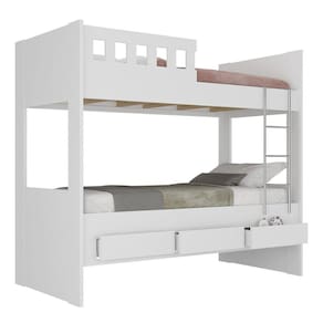 A Beliche 3 Gavetas com Escada e Grade de Proteção Foscarini possui amplo espaço para acomodar as roupas de cama e outros pertences, deixando o seu ambiente organizado. Possui 3 gavetas com corrediças telescópicas que proporcionam abertura total e deslize suave. Pensando no conforto e segurança, a cama superior possui grade de proteção lateral e um fácil acesso através da escada. É ideal para colchões de solteiro de 88 x 188 cm. É produzida 100% em MDF, seus diferenciais são notáveis na qualidade dos acabamentos e pintura em estufas modernas UV. Sua estrutura principal é de 18mm com cabeceira em 25mm. Seu sistema de montagem é rápido, fácil e descomplicado, realizado através de parafusos, minifix e cavilhas. Se encaixa perfeitamente em vários estilos de decoração. Aproveite. Acabamento da Gaveta: Pintura Texturizada UV Acompanha Cama Auxiliar: Não Acompanha Colchão: Não Acompanha Dossel: Não Acompanha Móbile: Não Acompanha Suporte para Mosquiteiro: Não Altura do Estrado até o Chão: 137 Ambiente Principal: Quarto Infantil codigo_ean: 7908243318544 Complexidade da Montagem: Média: pode ser montado por mais de uma pessoa e/ou necessite de maior conhecimento para montagem Cor: Branco Cor do Produto: Branco Escala de Brilho: Fosco Escala de Brilho da Gaveta: Fosco Gaveta com Chave: Não Itens Inclusos: 1 Cama, Kit Ferragens e Manual de Montagem. Linha ou Coleção: Viena Manual de Montagem e Instalação: https://product-hub-prd.madeiramadeira.com.br/878264/documents/1d9a851f-8adb-4ed5-a90e-637f5829ebf11652391908911.pdf Material da Gaveta: MDF Material do Estrado: Pinus e Eucalipto Material Principal: MDF Necessita Montagem: Sim Origem do Produto: Nacional Permite a Utilização de Cama Auxiliar: Sim Peso: 108 Peso Máximo por Gaveta: 15 Possui Baú: Não Possui Pés: Não Possui Portas: Não Possui Prateleiras: Não Recomendações de Uso, Manutenção e Limpeza: Limpar com flanela ou pano macio seco, não utilizar produtos abrasivos, desengordurantes, álcool ou solvente. Não expor o produto diretamente à luz solar e à umidade. Sistema de Montagem: Parafusos, minifix e cavilhas. Suporta Até (kg): 200 Tamanho do Colchão Indicado (L x C): 88 x 188 Tipo de Cama: Beliche Tipo de Colchão: Solteiro Tipo de Corrediça da Gaveta: Metálica Telescópica Tipo de Estrado: Removível Tipo de Puxador da Gaveta: Embutido Ean: 7908243318544