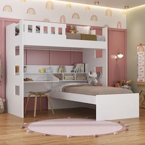 A Beliche com Escrivaninha e Grade de Proteção Foscarini é uma ótima opção para quem busca ambientes jovens, únicos, descontraídos e modernos, oferecendo um espaço para criar e sonhar. Pensando no conforto e segurança, a cama superior possui grade de proteção lateral e um fácil acesso através da escada. Ideal para colchões de solteiro de 88 x 188 cm. É produzida 100% em MDF, seus diferenciais são notáveis na qualidade dos acabamentos e pintura em estufas modernas UV. Seu sistema de montagem é rápido, fácil e descomplicado. Sua estrutura principal é de 25mm com detalhes em 15mm. Confeccionada com materiais de alta qualidade, apresenta estrutura resistente e durável, capaz de suportar até 100 kg. Medidas montado (A x L x P): 192 x 195 x 195 cm. Ideal para otimizar o espaço do seu quarto.