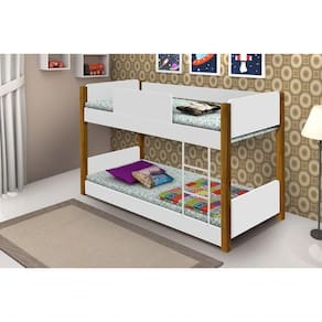 Beliche Infantil/Juvenil Valentina Branco/Mel com Pés de Madeira com 2 colchões