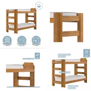 Características: 4 Pés em MDF Acabamento pintura UV Estrutura em MDF Escada acoplada Indicação de colchão 188x88 cm Proteção antiqueda Suporta até 240 kg Tipo de estrado removível Travessão e Ripas em madeira maciça