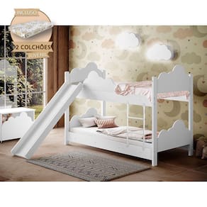 A Beliche Marina proporciona para o quarto um toque de delicadeza, requinte e conforto. Além de decorar ainda mais o ambiente, ela traz diversão e alta segurança com material resistente e de qualidade.Tipo: BelicheModelo: MarinaCor: BrancoGarantia: 90 diasPintura UV VernizEstrutura em MDFPés em Madeira MaciçaProduto DesmontadoAcompanha colchãoMedidas Cama:Altura: 112cmLargura: 75cmComprimento: 154cmMedidas Colchão: Altura: 10cmLargura: 68cmComprimento: 148cmMedidas Escorregador:Altura: 132cmLargura: 39cmComprimento até a cama: 110cmATENÇÃOIMAGENS MERAMENTE ILUSTRATIVAS REALIZADO EDIÇÃO, PODENDO HAVER UMA PEQUENA VARIAÇÃO DE COR DEPENDENDO DE CADA TELA OU MONITOR.Beliche Infantil Montessoriana com ColchÃes e Escorregador Juvenil Marina - Branca