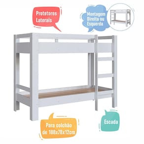 Que tal a Beliche Slim?Seja para otimizar o espaço ou acomodar as crianças com conforto, a Beliche Slim é a escolha ideal para um quarto funcional e aconchegante. Com estrutura versátil e design bem planejado, ela oferece dois leitos que garantem noites tranquilas para irmãos que dividem o quarto ou também para convidados que vão passar uma noite - a cama superior conta com proteção lateral, trazendo mais segurança para o dia a dia. Enquanto isso, o visual clean e a cor clássica facilitam a hora de personalizar o dormitório com enfeites e acessórios variados.Completa, né? Marca: Modern