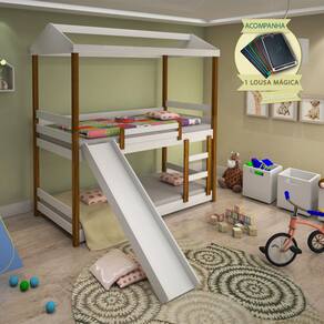 Beliche Infantil Solteiro Manuela com Escorregador Branco e néctar das flores - Acompanha Lousa Magica