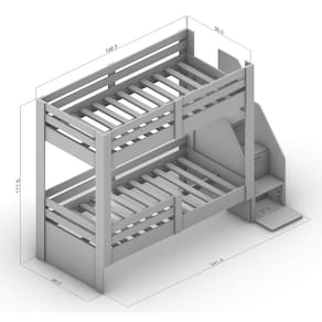Caracteristicas Cama: Acabamento em FF Estrutura MDP 15 mm Estrutura Estrado MDF 25mm Indicado para colchao de 88x1,88cm Limite de peso permitido para ambas as camas e de 100kg Peso suportado por degraus 80kg Porta basculante com dobradica curva Puxadores F14 em madeira Sapatas redondas