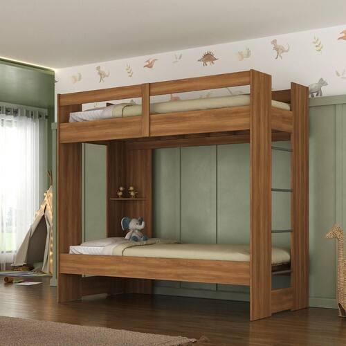 Beliche Juvenil Savana 1 Prateleira Nogal Espresso Móveis. Beliche solteiro com prateleira integrada em nogal. Design moderno e funcional. Ideal para economizar espaço. Fabricado pela Espresso Móveis. Durável e resistente. Opção versátil para quartos compartilhados. Entrega rápida e garantia de qualidade.