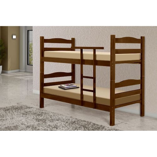 DESCRIÇÃO: Altura cabeceira: 160 cm Largura: 90 cm Comprimento: 190 cm Espaço entre as camas: 69 cm (Aproximadamente) Espaço entre o chão e o estrado: 26 cm (Aproximadamente) Peso suportado: 200 kg Ideal colchões de medidas: 88 x 188 cm Material Utilizado: Cabeceira, Peseira e Lateral: 100% Madeira maciça Tauari Ripas e Sarrafos: Madeira Pinus/Eucalipto de alta resistência.