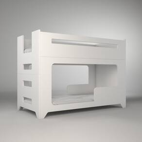 Beliche Lumi Timber Branco. Otimização de espaço, sem deixar de lado o estilo e a personalização. A Linha Lumi surge como uma ótima alternativa para ambientes pequenos. É utilizado em toda a sua estrutura MDF das melhores marcas do país, com espessura de 2,5cm, o que torna o móvel muito mais forte e durável. Possui um design moderno, com as laterais fresadas em chapas inteiriças, tendo lateral, pés e meia guarda em uma só peça. A escada de acesso à cama superior é embutida na peseira, também fresada na própria peça. A cama superior possui grade de proteção reforçada, para maior segurança da criança. Utilizado colchão padrão solteiro (1,88x0,88mt) nas 2 camas. A pintura laca traz o acabamento de alto padrão. Pode ser adquirido nas versões Com escorregador ou Treliche. Marca: Timber Ean: 7908308773080