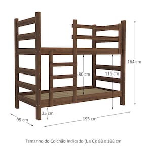 O Beliche Madeira Maciça - vira 2 Camas - com Colchões Inclusos Dubai Multimóveis é uma opção versátil e sofisticada para otimizar espaço em seu quarto ou no dormitório dos seus filhos. Produzido 100% em madeira maciça (pinus) proveniente de reflorestamento, este beliche é um investimento consciente que garante durabilidade e resistência ao móvel. Com barras reforçadas e capacidade para suportar até 110kg, esta peça oferece segurança e tranquilidade durante o sono. O diferencial deste beliche é sua funcionalidade: você pode utilizá-lo também como duas camas separadas. Além disso, possui dupla furação podendo ser utilizado para colchão de 78 ou 88cm, garantindo flexibilidade na escolha do tamanho ideal. E o melhor: os colchões D23 estão inclusos. Com tratamento anti-ácaro e anti-alérgico, proporcionam maior proteção à saúde durante seu descanso.