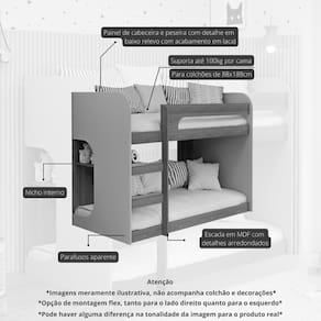 - Colchão indicado para a cama inferior 188x88 cm com altura máxima de 16 cm