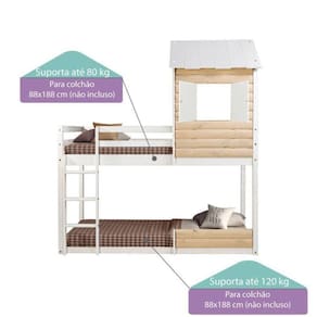 Com o Beliche Club House Wood da Casatema com Escada e Telhado, a diversão está garantida para seu filho(a), desenvolvida especialmente para o público infantil. Uma forma divertida de fazer do quarto o melhor lugar do mundo! Com estrutura em madeira maciça de área reflorestada, acabamento em cera/ cepilhado, sinônimo de qualidade e durabilidade do produto.