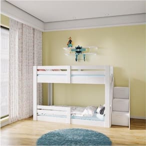 Beliche Montessoriano Star Plus com Grade Casatema Branco. Para tornar o quarto mais descontraído e extremamente funcional a Beliche Star Plus não pode deixar de ser sua escolha. Extremamente moderna, com design exclusivo, ideal para quarto pequeno. E ainda para completar esse luxo de quarto completíssimo, temos 4 portas com muito espaço para organizar os objetos e roupas. Sua estrutura é rente ao chão, o que permite a criança ser mais independente, o método visa a aprendizagem da criança com sua curiosidade natural, explora e dá ainda mais vazão à sua necessidade de aprender. O quarto será o canto favorito da casa! Ean: 7908308733374
