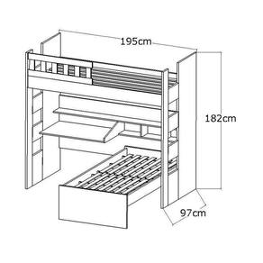 Cama Alta com Escrivaninha:195 X 182 x 97cm (L x A x P).