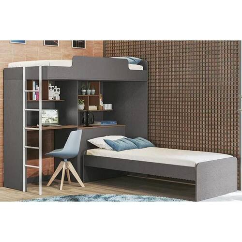 Beliche Multifuncional Office New (Cama+Bancada+Baú+Nicho+Prateleiras) Grafite/Jatobá - Santos Andirá
