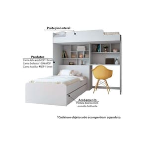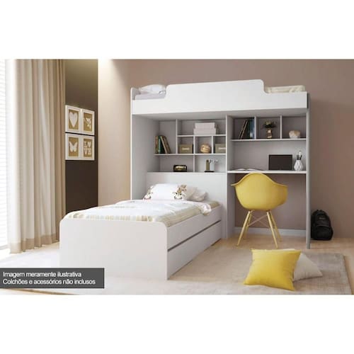 Beliche Multifuncional Office Teen Aquarela (Cama+Bancada+Baú+Nicho+Prateleiras) Branco - Santos Andirá