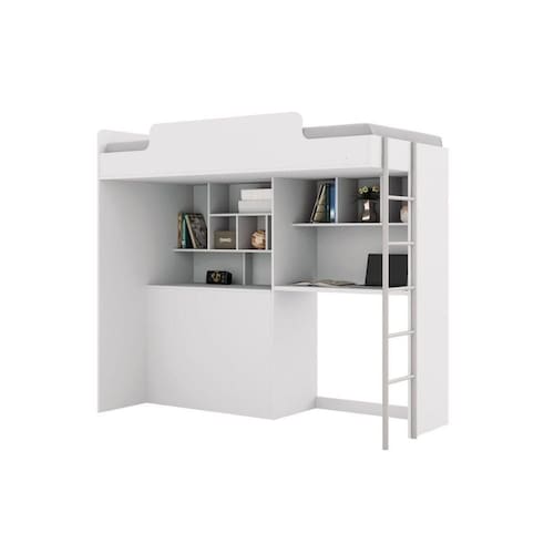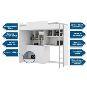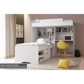 Beliche Office New (Cama+Escrivaninha de CPU+Baú+Nicho+Prateleiras) Branco - Santos Andirá